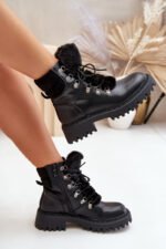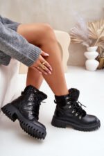 Moteriškos traperės, pagamintos iš eko odos, yra puikus pasirinkimas vėsesnėms dienoms. Modelis su raišteliais ir užtrauktuku, kuris palengvina greitą apsiavimą ir užtikrina idealų prigludimą. Bato liežuvėlį puošia minkštas kailis, kuris suteikia žavesio ir apsaugo nuo šalčio. Vidus su pašiltinimu garantuoja šilumą ir komfortą dėvint, todėl traperės puikiai tiks tiek kasdienai, tiek sunkesnėmis oro sąlygomis. Renkantis dydį, prašome vadovautis dydžių lentelę.