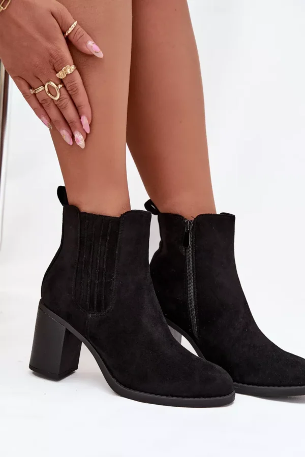 Šiltos moteriškos batai su blokiniu kulnu, juodos spalvos „Brevina“