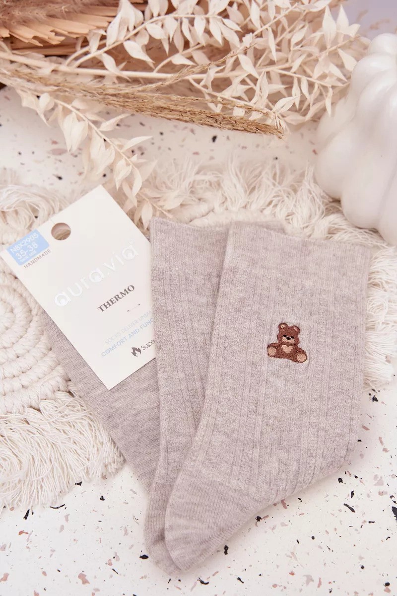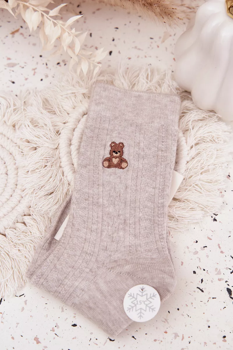 Moteriškos kojinės su vilnos priedu – tai šiltas ir jaukus pasirinkimas žiemos dienoms. Minkštos ir patogios, jos puikiai sušildo kojas, užtikrindamos komfortą visą dieną. Žavingas meškučio motyvas suteikia joms saldų, žiemos charakterį. Puikiai tinka kasdieniam dėvėjimui namuose arba kaip dovana.
