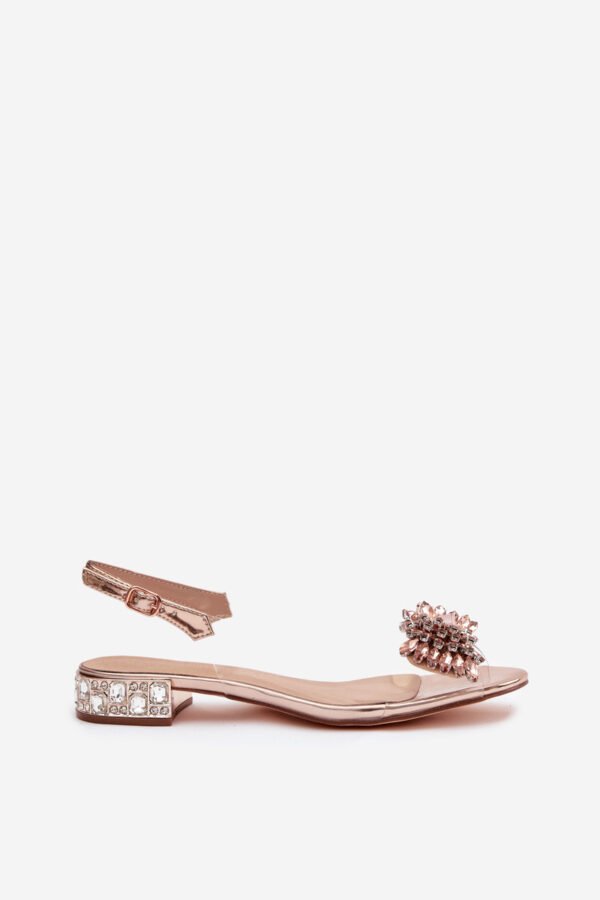 Skaidrūs moteriški sandalai yra puikus pasirinkimas ypatingoms progoms. Žemas, kristalais puoštas kulniukas švelniai žvilga, suteikdamas visam modeliui papuošalo charakterį ir lengvumą. Priekyje akį traukia įspūdinga kristalų puošta sagtelė, kuri pabrėžia moterišką ir elegantišką modelio stilių. Sagties užsegimas su reguliuojamu dirželiu leidžia tiksliai priderinti prie pėdos, užtikrinant komfortą ir stabilumą dėvint. Sandalai puikiai tiks kaip papildymas vakariniams įvaizdžiams, elegantiškoms suknelėms ir proginiams drabužiams.