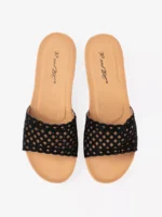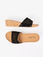 Mūsų pleištiniai papučiai su ažūriniu dirželiu ir kamštiniu padu yra puikus pasirinkimas moterims, kurios ieško stilingo ir patogaus sprendimo savo kasdieniams pasivaikščiojimams. Šie papučiai dera tiek su kasdienine, tiek su šventine apranga, tad jūsų kojos visada atrodys madingai ir jausis patogiai.