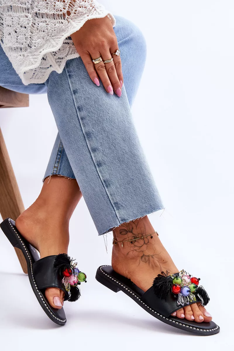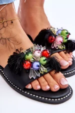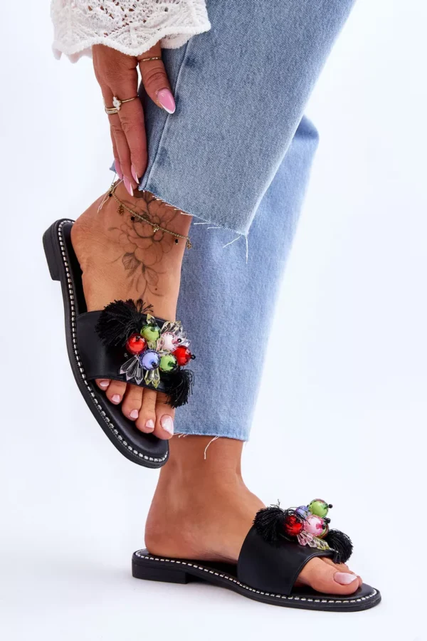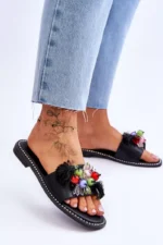 Šios elegantiškos “S.Barski KV-2775-47” juodos spalvos šlepetės ne tik suteiks jūsų pėdoms malonų apgaubimą, bet ir pridės stiliaus prisilietimą jūsų kasdieniams deriniams. Šlepetės pagamintos iš ekologiškos odos, todėl ne tik džiugins savo išvaizda, bet ir atitiks aukštus aplinkosaugos standartus. Priekinė šlepečių dalis puošta dekoratyviniais karoliukais bei subtiliomis gėlytėmis, kurios suteikia ypatingą akcentą.