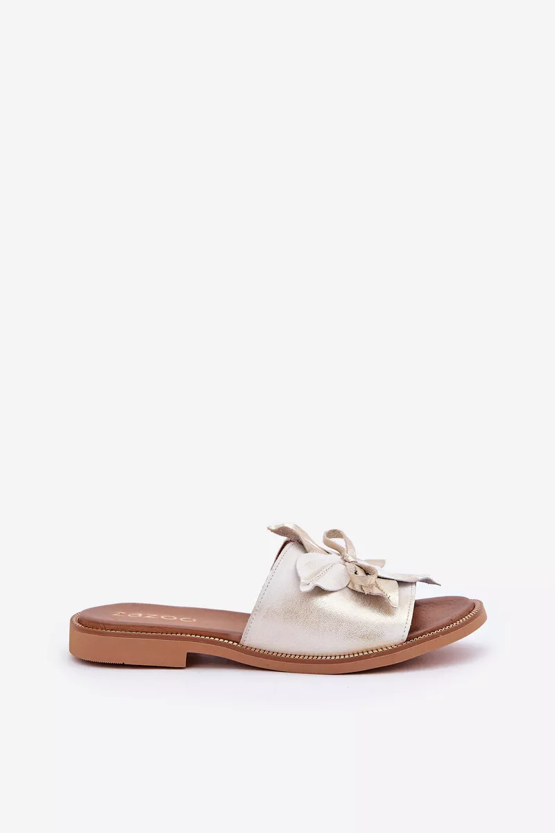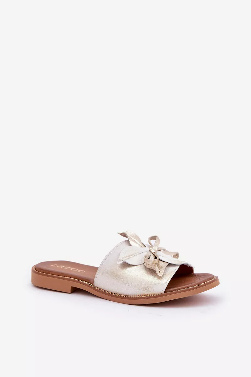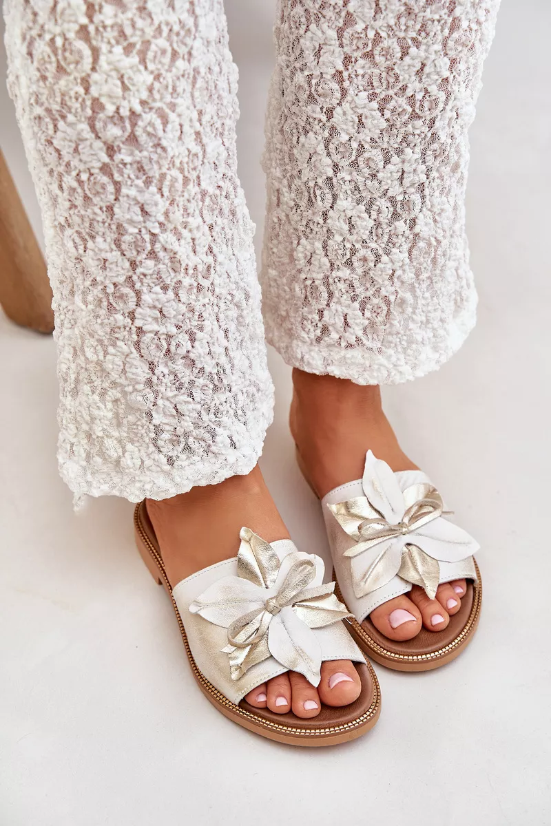 Natūralios odos moteriškos šlepetės yra puikus pasirinkimas moterims, ieškančioms elegancijos ir komforto derinio. Plokščias kulnas užtikrina patogumą naudojant visą dieną. Papuošalas suteikia joms nepakartojamo žavesio ir elegancijos. Šis modelis yra idealus pasirinkimas tiek elegantiškoms biuro stiliams, tiek kasdieniams išėjimams! Pasirinkdamos dydį, vadovaukitės dydžių lentele.
