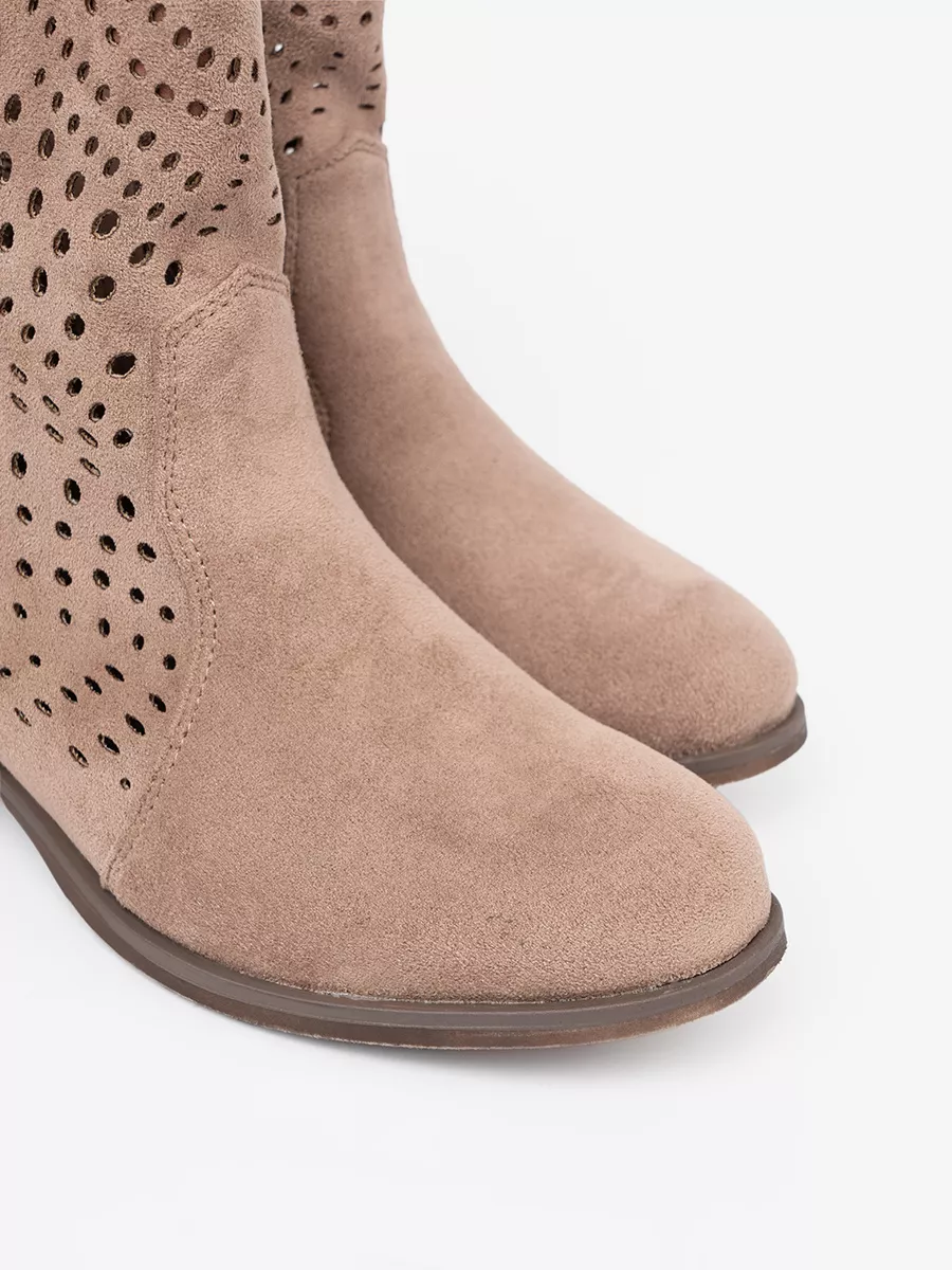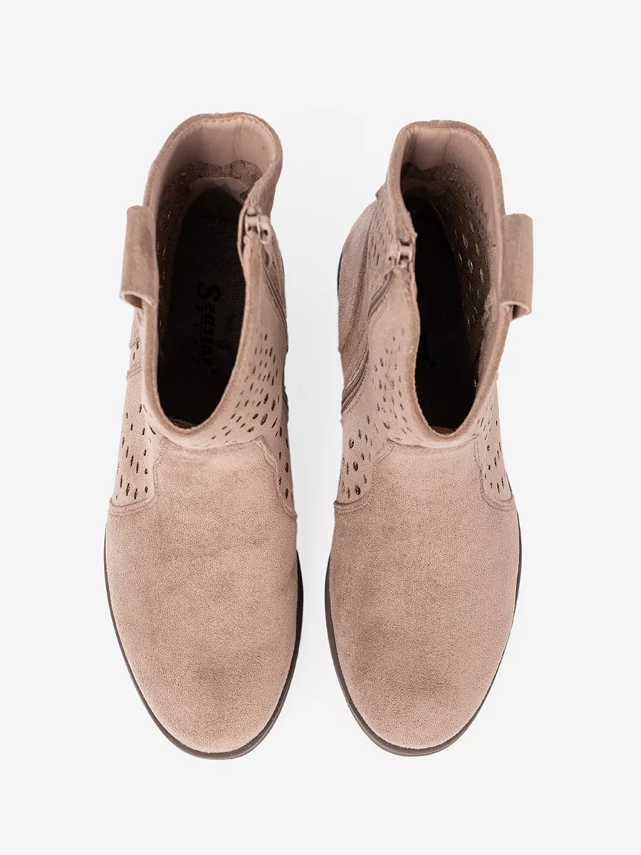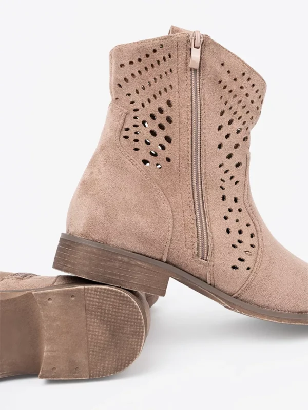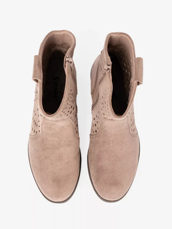 Šie smėliniai aulinukai yra idealūs pereinamojo sezono bei vėsesnių vasaros vakarų palydovai. Atviras ažūrinis raštas leidžia odai kvėpuoti, suteikdamas papildomo komforto karštomis dienomis, tačiau kartu išlaiko aulinukų formą ir stilių. Jie puikiai papildys jūsų boho-chic, country ar tiesiog laisvalaikio stiliaus derinius. Nesvarbu, ar planuojate dieną mieste, vakarėlį gamtoje, ar tiesiog norite jaustis ypatingai kasdien, šie batai suteiks jūsų įvaizdžiui unikalumo ir pasitikėjimo. Subtilūs aulinukų šoniniai užtrauktukai palengvina apsiavimą ir nusiavimą, užtikrinant praktiškumą.
