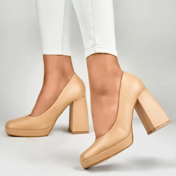 Smėlio spalvos bateliai su plačiu aukštakulniu