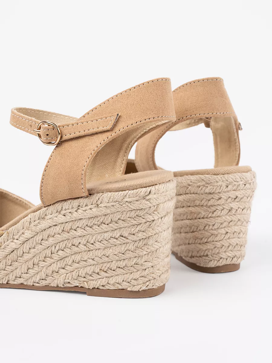 Smėlio spalvos espadrilių sandalai ant platformų