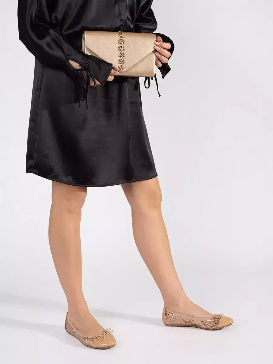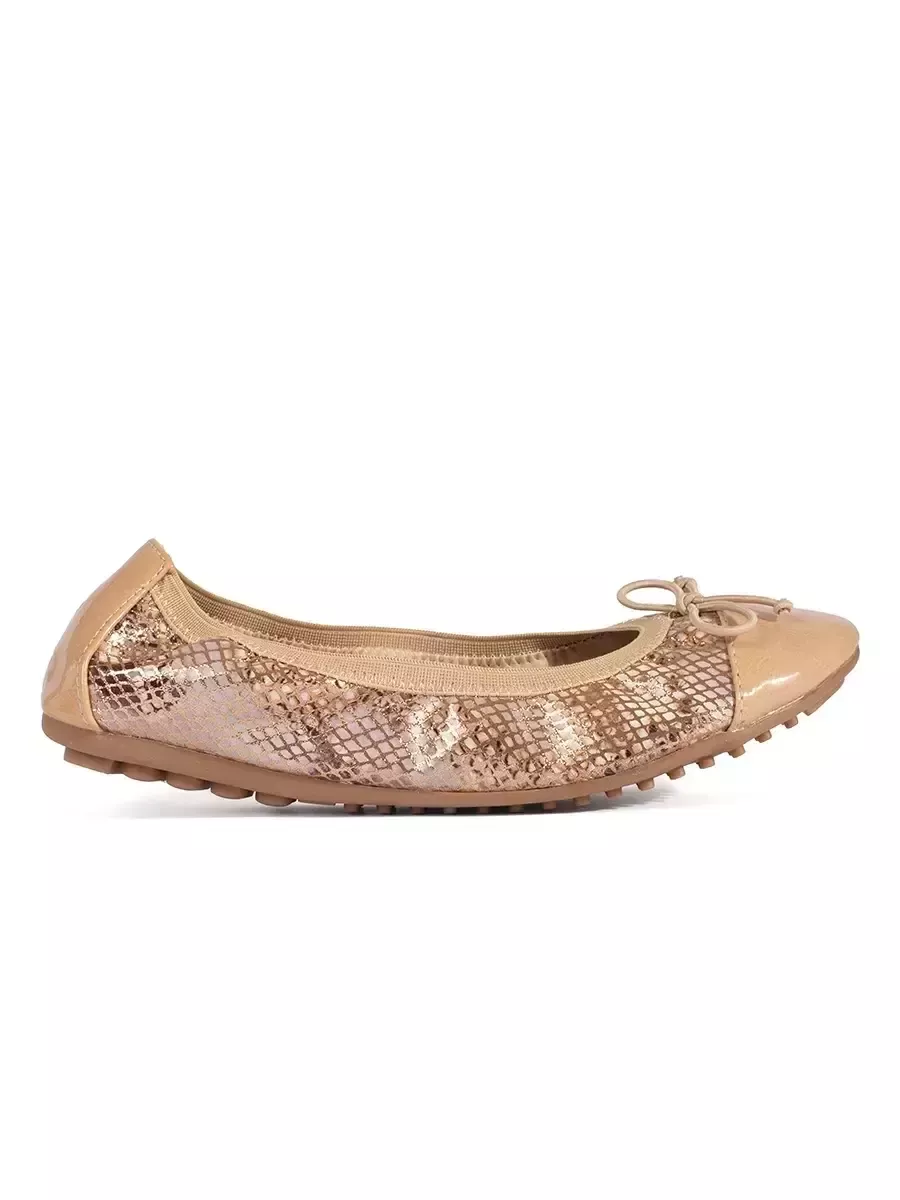 Smėlio spalvos gyvatės odos rašto elastiniai balerinai