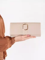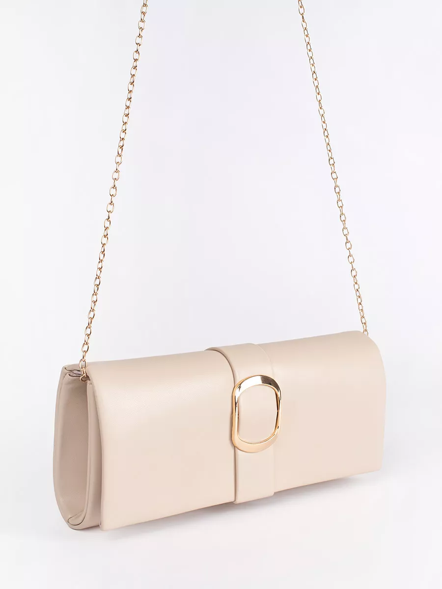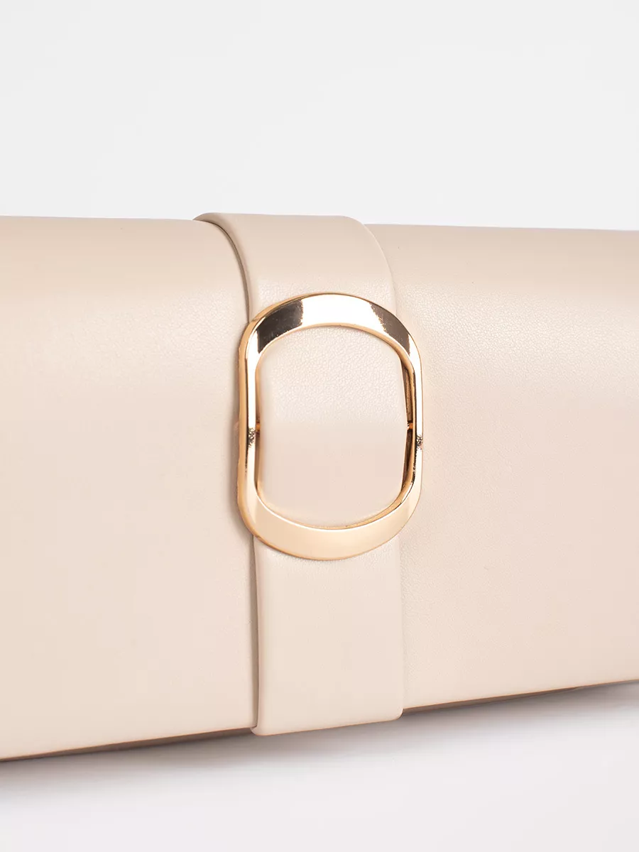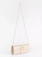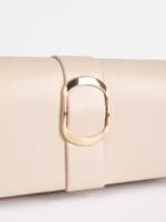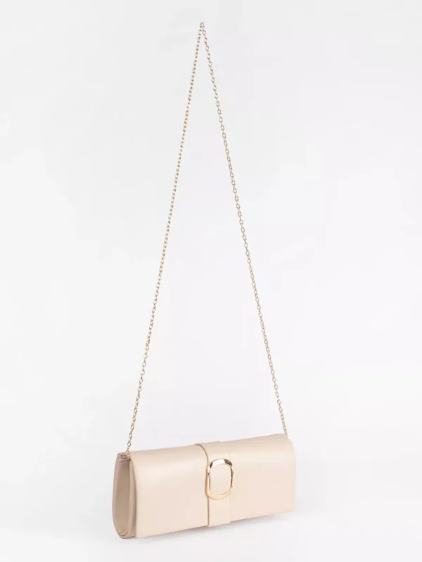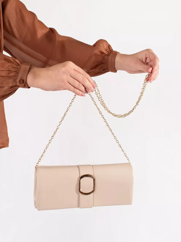 Smėlio spalvos maža moteriška rankinė su auksine sagtimi