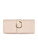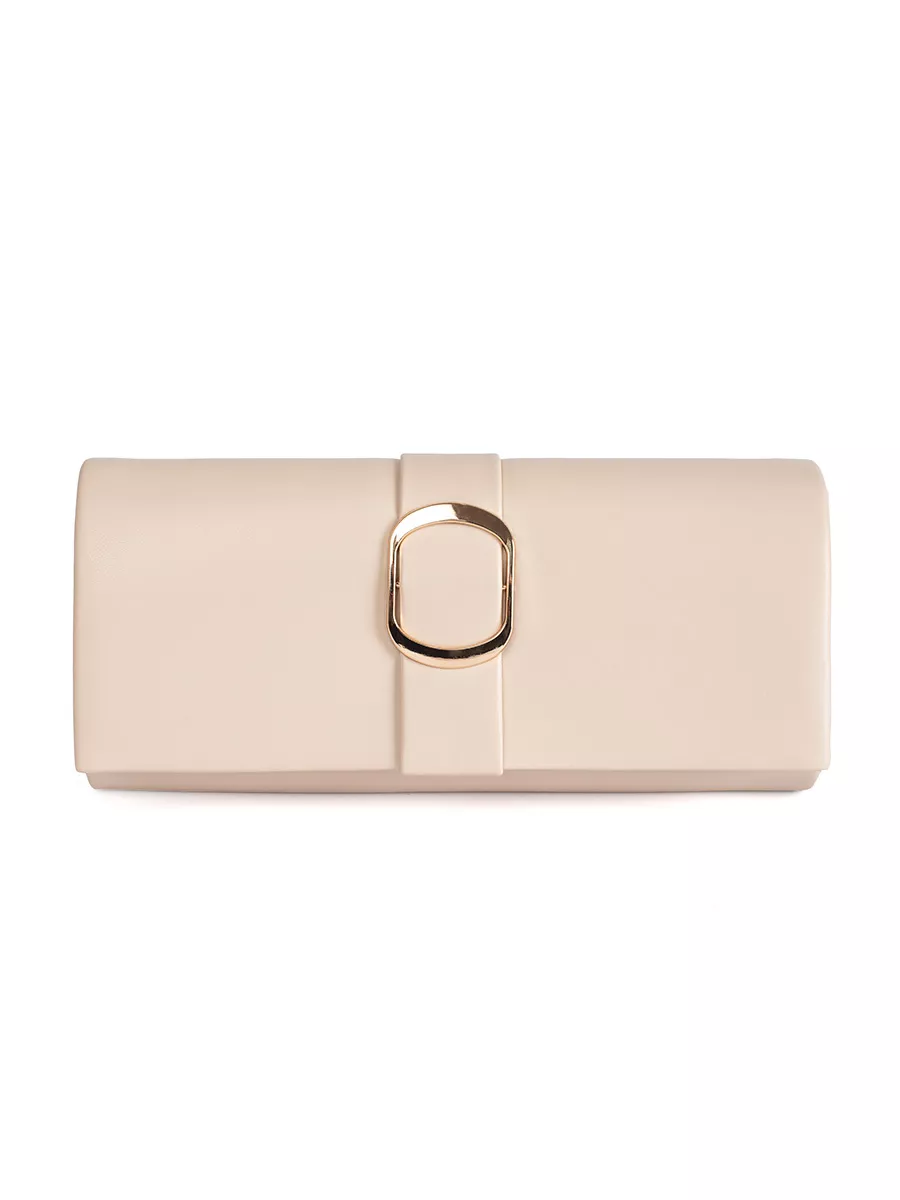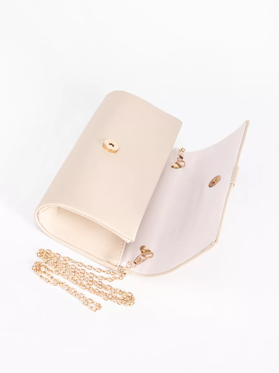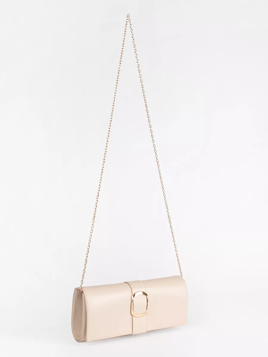 Smėlio spalvos maža moteriška rankinė su auksine sagtimi