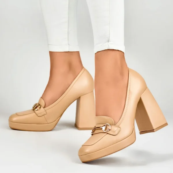Smėlio spalvos mokasinai su aukštu patogiu kulnu