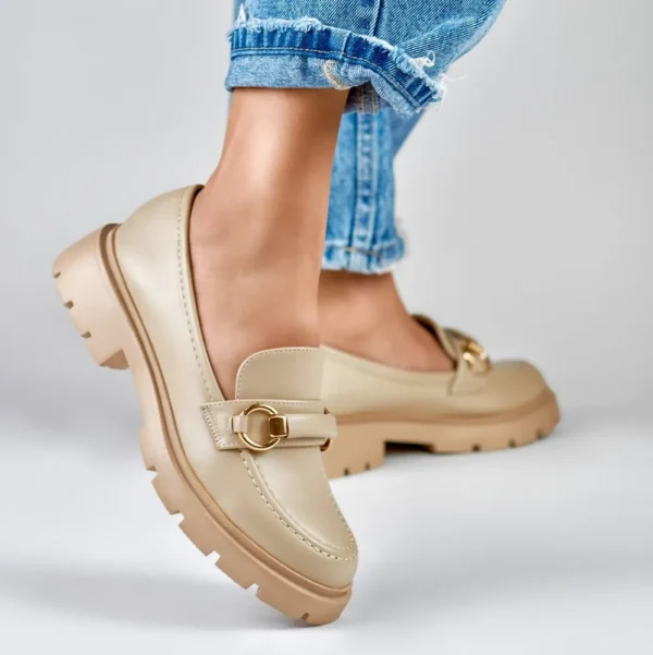Smėlio spalvos mokasinai su minimalistiniais papuošimais