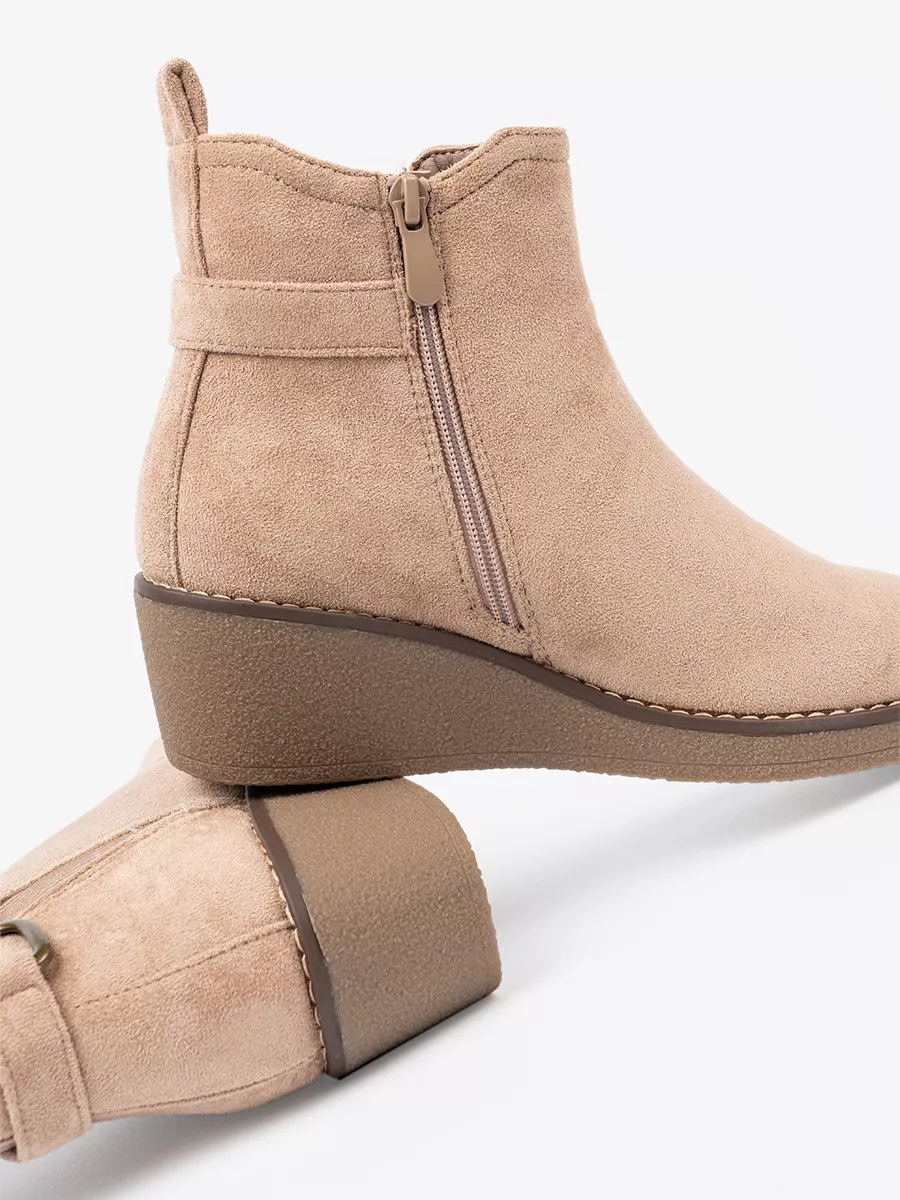 Mūsų komanda atidžiai rinko aukščiausios kokybės medžiagas, kad šie smėlio spalvos aulinukai atitiktų aukščiausius standartus. Išorinė dalis pagaminta iš patvarios, bet lanksčios medžiagos, kuri ne tik atrodo prabangiai, bet ir atlaiko kasdienį dėvėjimą. Vidus išklotas minkštu, orui laidžiu pamušalu, kuris užtikrina optimalią pėdos temperatūrą. Kruopščiai pagamintas žemas pleištas yra itin stabilus ir patvarus, suteikiantis pasitikėjimo kiekvienam žingsniui. Kiekviena detalė – nuo siūlių iki užsegimo – apgalvota, kad Jūs džiaugtumėtės ilgalaikiu komfortu ir stilinga išvaizda.