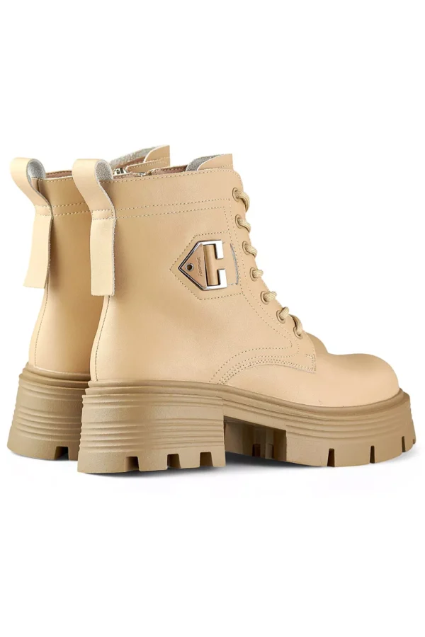 Smėlio spalvos odiniai moteriški platforminiai apšiltinti batai iš natūralios odos