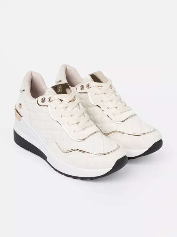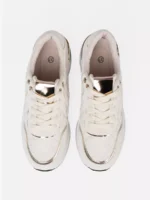 Smėliniai sportbačiai su blizgančiais aukso akcentais