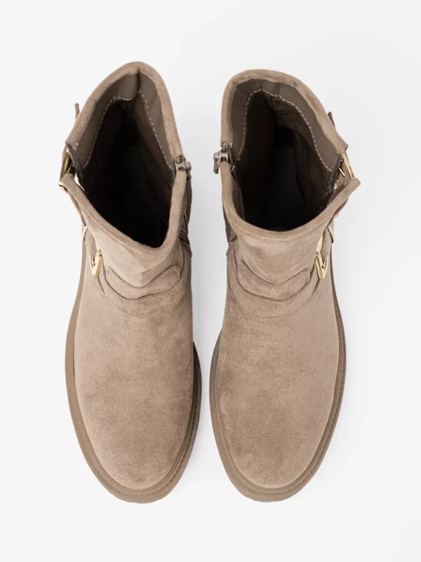 Elegantiški Smėlio Spalvos Zomšiniai Aulinukai Su Dekoratyviniais Sagčiais