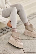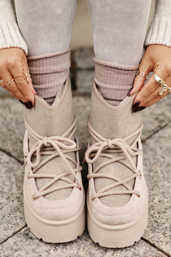 Stilingi platformos sniego batai yra puikus mados ir patogumo derinys. Jie turi praktiškus priekinius raištelius, kurie užtikrina gerą prigludimą prie pėdos. Vidus, apšildytas dirbtiniu kailiu, garantuoja šilumą šaltomis dienomis. Patogūs ir šilti, puikiai tiks tiek kasdienai, tiek žiemos pasivaikščiojimams. Renkantis dydį, prašome vadovautis dydžių lentelę.