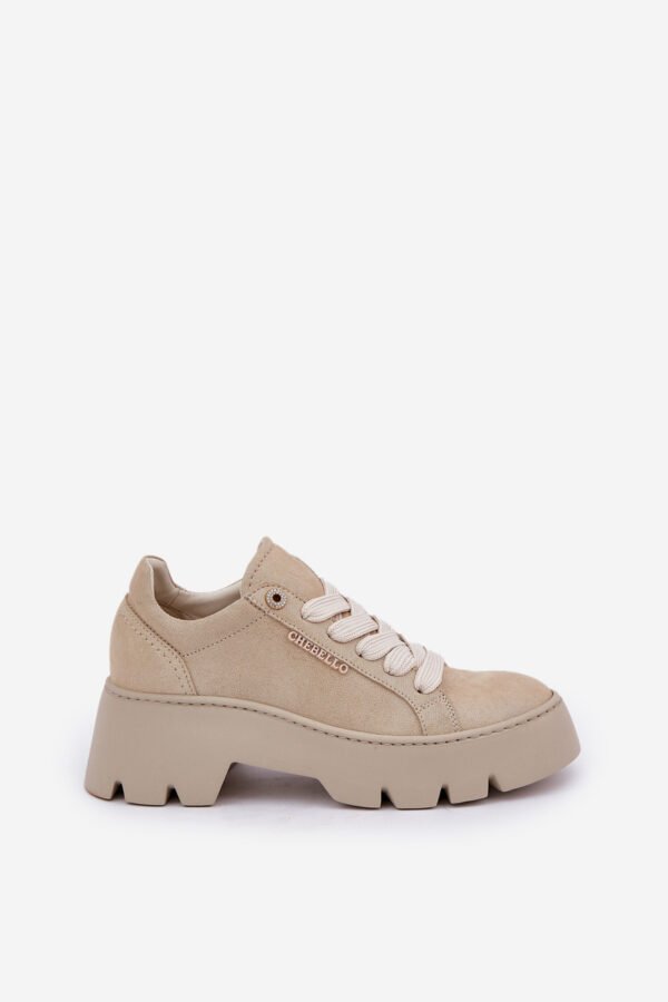 Chebello moteriški sportbačiai. Pagaminti iš aukštos kokybės natūralios odos, jie garantuoja ilgaamžiškumą ir patogumą. Platforma ir plokštas kulnas užtikrina stabilumą ir patogumą visą dieną. Apvalūs priekiai suteikia jiems subtilų, moterišką charakterį, o stilingas dizainas leidžia puikiai derinti juos tiek su laisvalaikio, tiek su elegantiškesnėmis stilizacijomis. Tai puikus pasirinkimas moterims, kurios nori derinti madą su patogumu. Renkantis dydį, prašome vadovautis dydžių lentele.