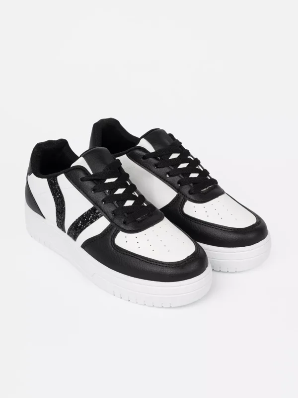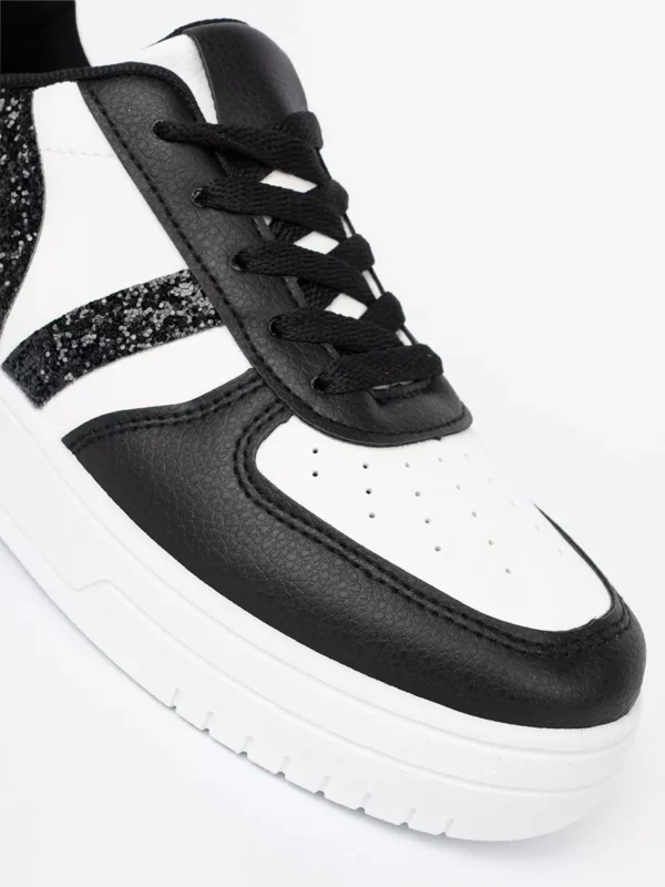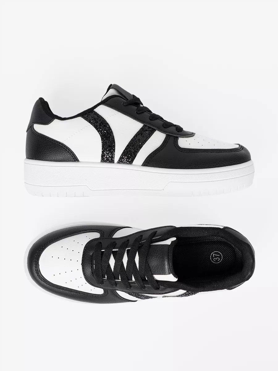 Šie stilingi juodai-balti kedai su žėrinčiais akcentais yra puikus pasirinkimas tiems, kurie ieško avalynės, neprarandančios savo aktualumo ir visada atrodančios madingai. Jų dinamiškas dizainas, derantis su subtiliu blizgesiu, leidžia ne tik atrodyti puikiai, bet ir jaustis nepaprastai patogiai. Kiekviena detalė apgalvota, kad šie kedai taptų jūsų mėgstamiausia avalyne, kurią norėsite avėti vėl ir vėl. Investuokite į stilių ir komfortą, kuris lydės jus kiekviename žingsnyje.