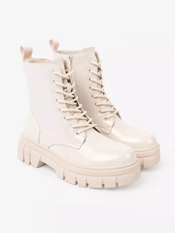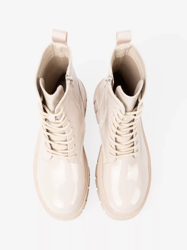 Atraskite nepriekaištingą stilių ir patogumą su mūsų naujausiais lakinės odos aulinukais švelniame smėlio atspalvyje. Šie elegantiški batai sukurti šiuolaikinei moteriai, vertinančiai aukštą kokybę ir išskirtinį dizainą. Pagaminti iš blizgios, aukščiausios klasės lakinės odos, jie suteiks jūsų įvaizdžiui rafinuotumo ir taps nepamainoma garderobo detale. Klasikinis aulinukų dizainas, papildytas moderniu blizgesiu, puikiai dera tiek su kasdieniais, tiek su iškilmingesniais drabužiais, užtikrinant, kad atrodytumėte nepriekaištingai bet kokiai progai.