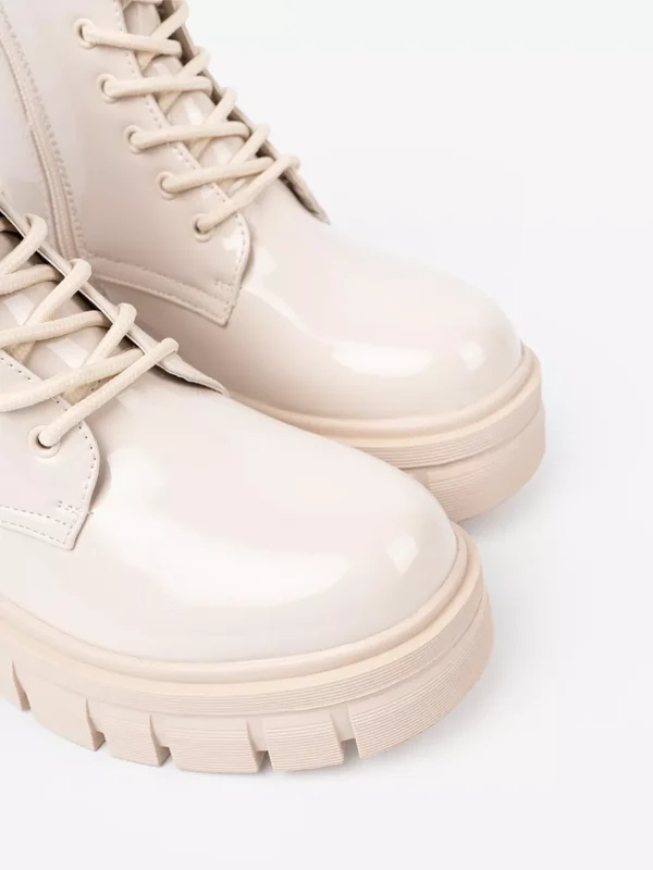 Smėlio spalvos lakinės odos aulinukai yra tikras atradimas kiekvienai mados entuziastei. Jie puikiai atrodys su siauromis džinsinėmis kelnėmis, elegantiškais sijonais ar suknelėmis. Galite juos dėvėti darbe su klasikiniu kostiumu arba savaitgalio pasivaikščiojimu su stilingu paltuku ir megztiniu. Jų blizgus paviršius suteikia net ir paprasčiausiam įvaizdžiui akcentą, o švelni spalva lengvai dera su juoda, balta, pilka, rudais bei pasteliniais atspalviais. Tai batai, kurie atvers daugybę stilistinių galimybių.