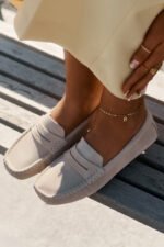 „Big Star“ moteriški mokasinai, pagaminti iš aukštos kokybės natūralaus zomšos, yra elegancijos ir komforto klasika. Suapvalinti priekiai užtikrina patogumą visą dieną, o minkštas odinis vidpadis garantuoja tinkamą amortizaciją. Klasikinis šių mokasinų kirpimas leidžia juos derinti prie daugelio stilių, tiek laisvalaikio, tiek formalesnių. Puikiai tinka kasdienai, šie mokasinai yra elegantiškas ir patogus pasirinkimas bet kokiai progai. Rinkdamiesi dydį, prašome vadovautis dydžių lentelę.