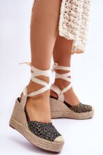 Sandaliai ant platformos su juostelėmis aplink čiurną