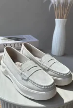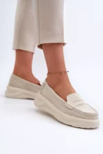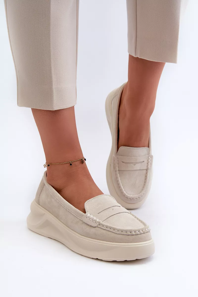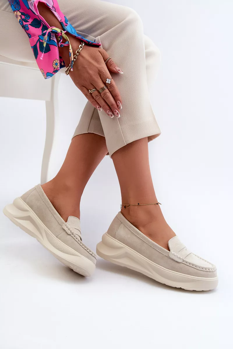 Mocasinai moterims, pagaminti iš natūralaus zomšo. Įmontuoti ant platformos ir lengvo pasukimo. Suapvalinti priekiai. Šie mokasinai, idealiai tinkantys prie daugelio stilių, apjungia eleganciją ir komfortą. Būtinai turėkite juos savo garderobe! Renkantis dydį, prašome vadovautis dydžių lentele.