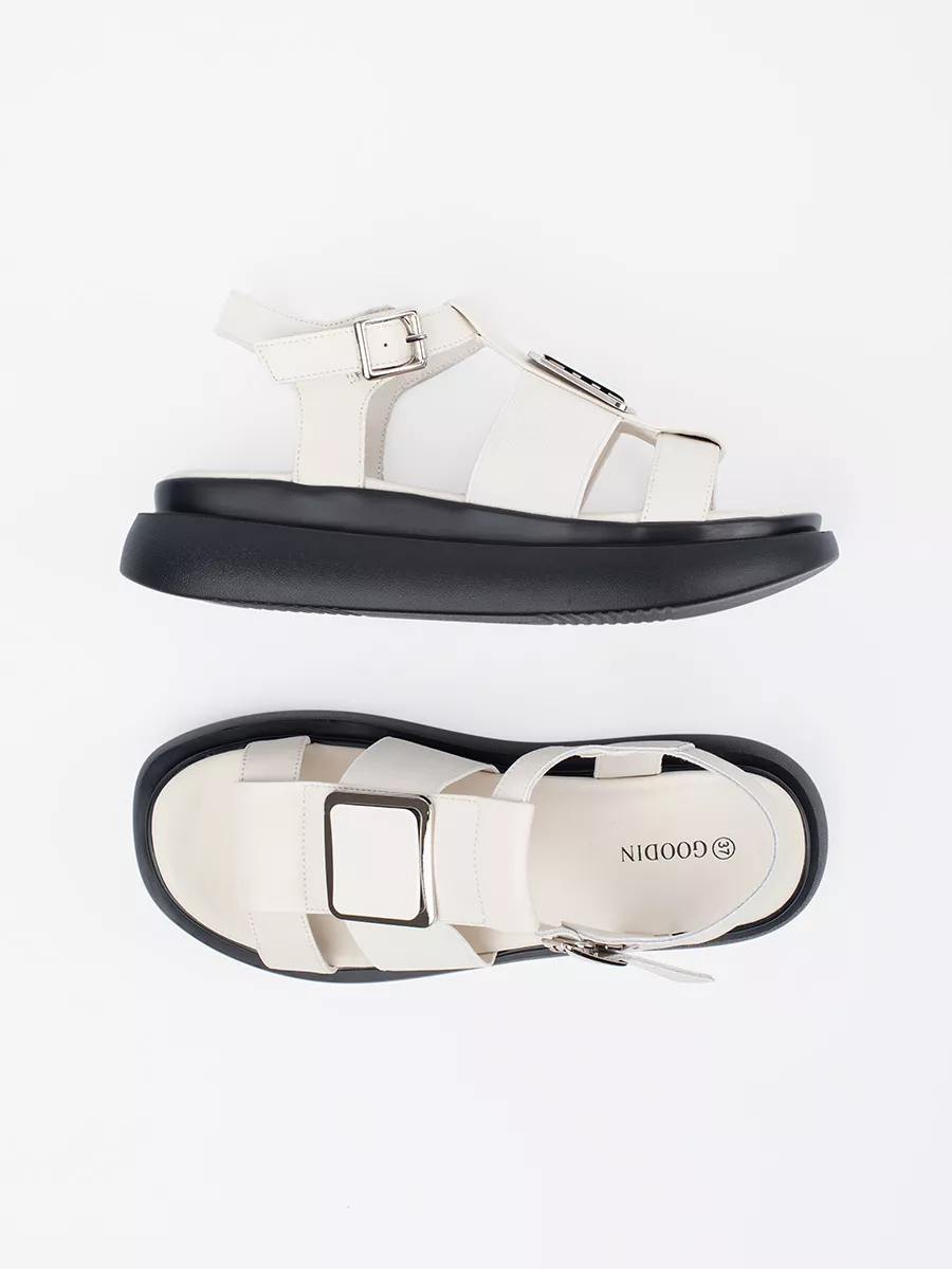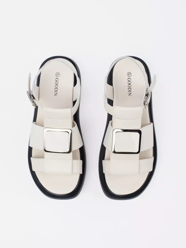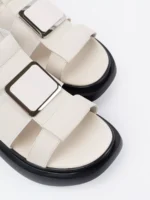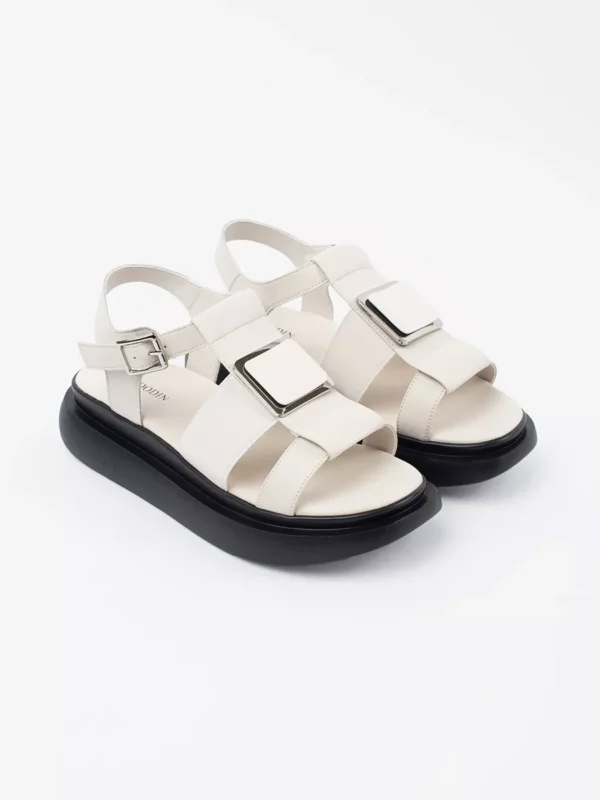 Splendidūs light beige platforminiai sandalai pasižymi elegancija ir komfortu, puikiai tinka įvairioms progoms. Pagaminti iš aukštos kokybės odos, jie suteikia rafinuotumo įspūdį, o platus dirželis palaiko patogumą visą dieną. Dėl subtilios smėlio spalvos šie sandalai puikiai dera su įvairiais rūbais.