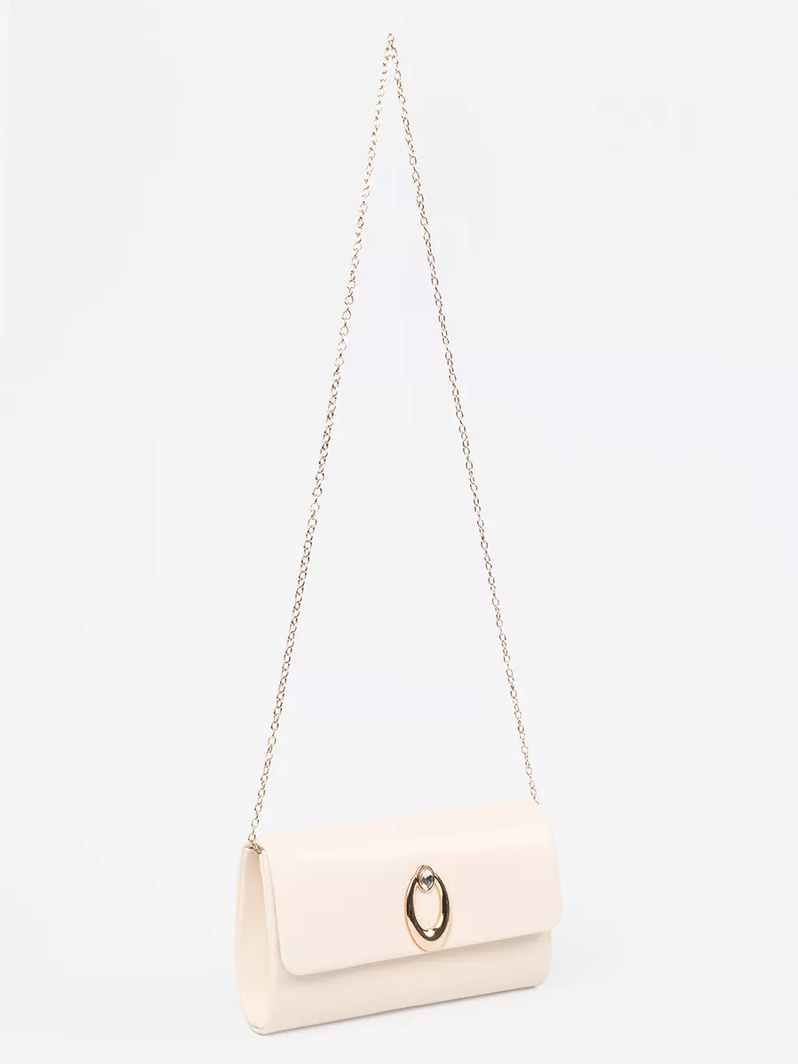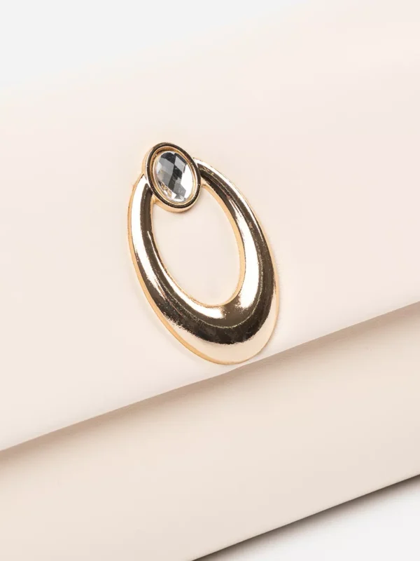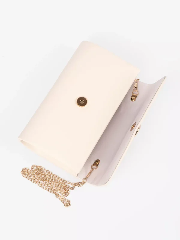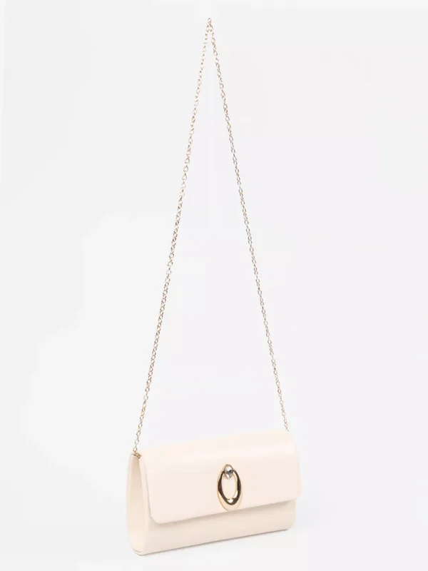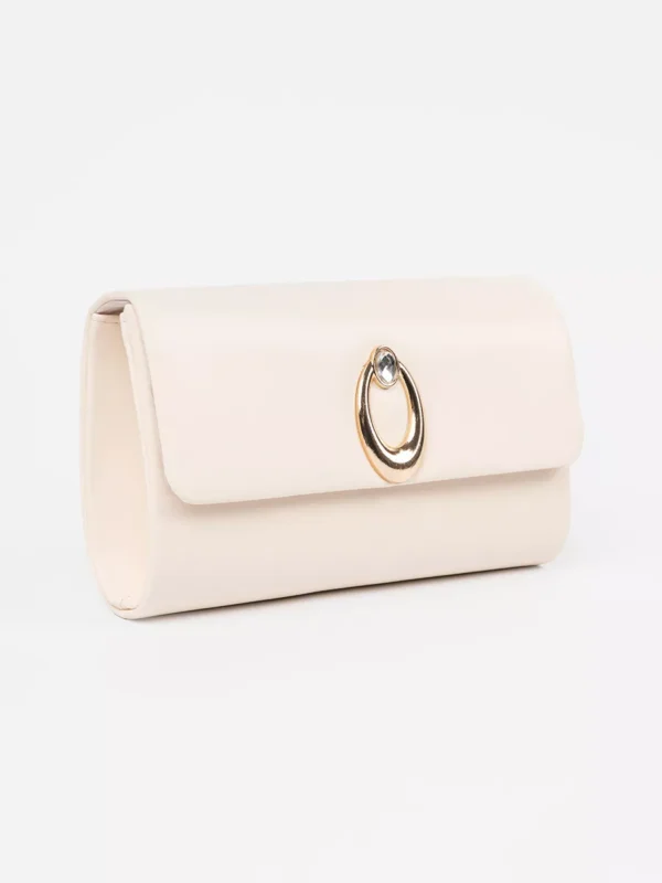 Delninukė yra pagaminta iš aukštos kokybės medžiagų, kurias lengva prižiūrėti. Pagrindinė spalva – šviesi smėlio, o sidabriniai elementai, tokie kaip užsegimai ir dekoratyvinės detalės, suteikia prabangos pojūtį. Kompaktiškas dydis leidžia lengvai nešti rankomis, todėl šis aksesuaras yra idealus pasirinkimas vakarėliams ar oficialioms progoms.
