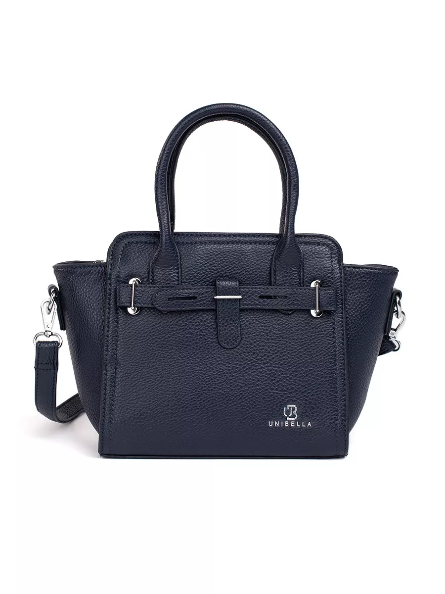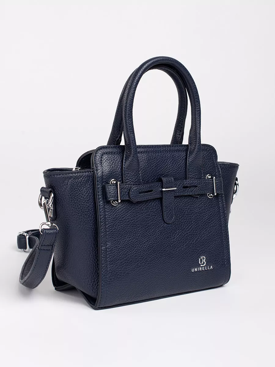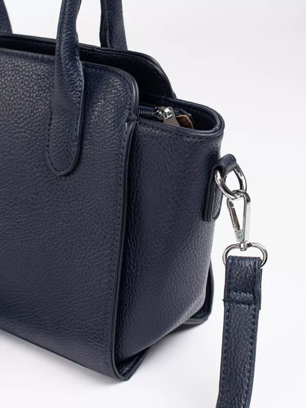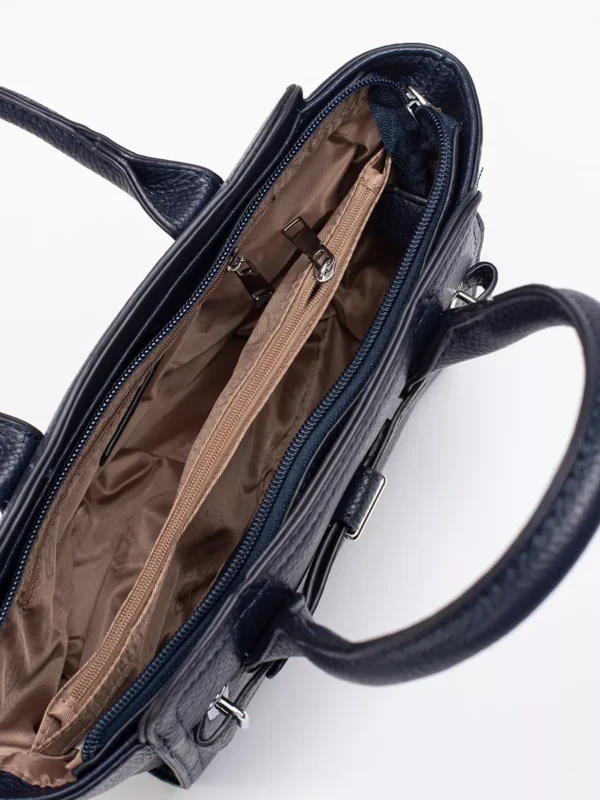 Tamsiai mėlyna rankinė su sidabro elementais