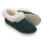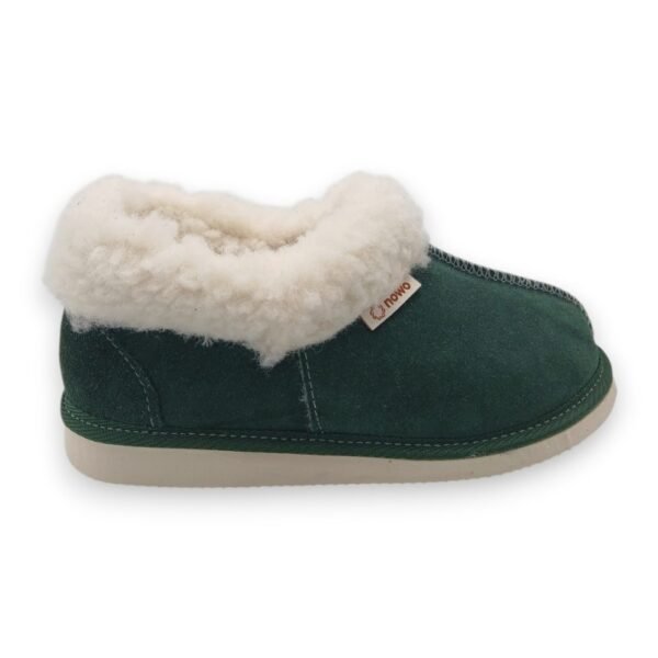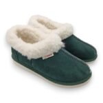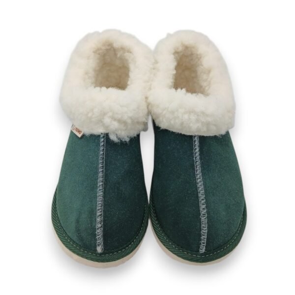 Tamsiai žalias šlepečių paviršius pagamintas iš patvarios, aksominio efekto medžiagos, kuri atrodo solidžiai ir tuo pačiu labai jaukiai. Kontrastingi siūlai bei baltas vilnos kailis suteikia gaminiui išskirtinumo bei subtilaus žavesio. Tvirto, neslystančio pado dėka šlepetes galima avėti ne tik kambaryje, bet ir einant į balkoną ar verandą – jos stabilios, saugios ir atsparios dėvėjimuisi.