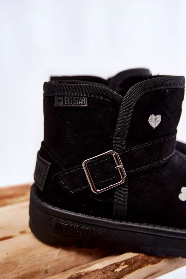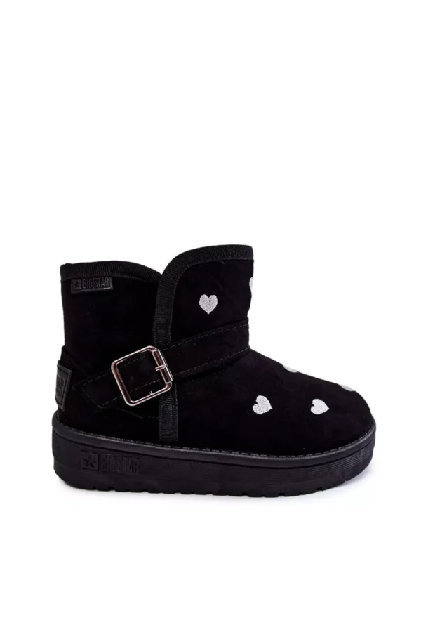 **Vaikiški batai sniegui Big Star KK374243 Juodi** – puikūs vaikų išorės drabužiai žiemos sezonui. Šie batai yra pagaminti iš aukštos kokybės tekstilės, dekoruoti subtiliais įsiuvais. Jie puikiai tinka vaiko kasdieninei aprangai vesniu oru, suteikdami šilumos ir komforto. Produktas turi patvarią platformą bei papildomai dekoruoti reguliuojamu dirželiu, kuris užtikrina patogų pritaikymą ir saugumą kojoms.