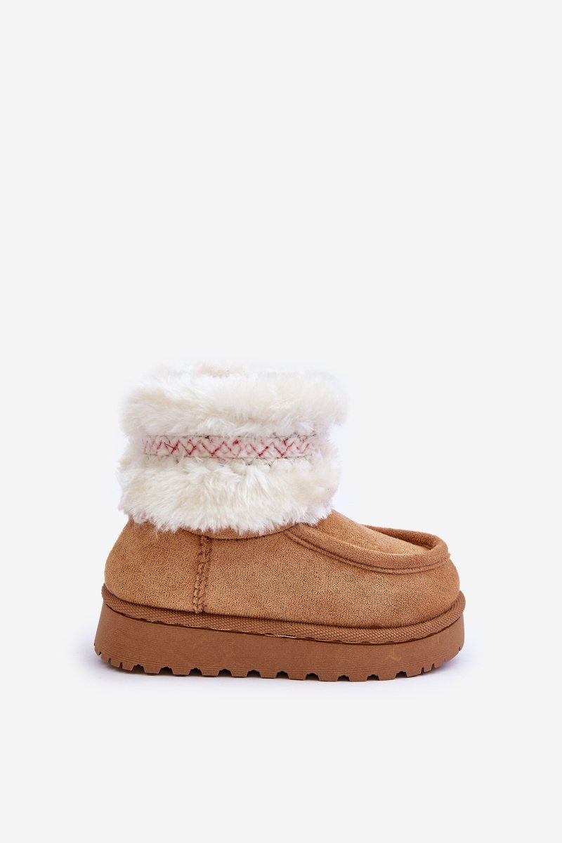 Vaiku žieminiai batai iš eko zomšo yra idealūs Jūsų mažyliui šaltomis žiemos dienomis. Batai yra ant guminio pado, kuris užtikrina gerą sukibimą su slidžiu paviršiumi. Bato aulas puoštas kailiu ir žavingu raštu suteikia ypatingo charakterio, o vidus su pašiltinimu užtikrina komfortą ir šilumą vėsiomis dienomis. Tai praktiškas ir madingas pasirinkimas žiemos nuotykiams lauke. Renkantis dydį, prašome vadovautis dydžių lentele.