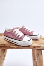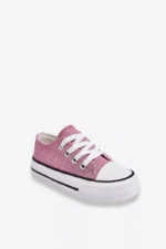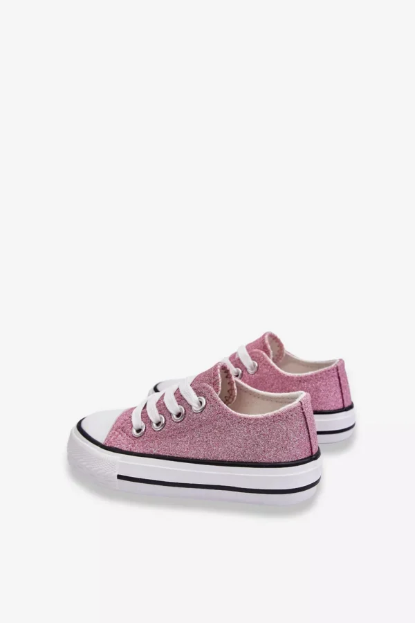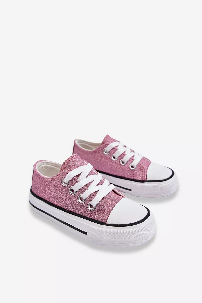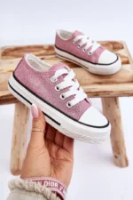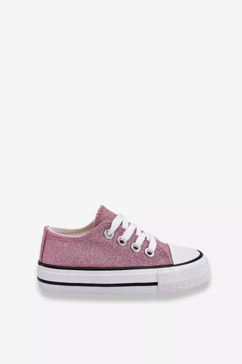 Vaikiški teniso bateliai pagaminti iš tekstilinės medžiagos. Puošti blizgučiais. Klasikinis raištelių užsegimas. Noselė sustiprinta guminiu elementu. Vidpadis minkštas ir medžiaginis. Padas guminis ir neslystantis. Bateliai lengvi ir patogūs. Idealiai tinka pavasario-vasaros sezonui. Renkantis dydį, prašome vadovautis dydžių lentele.