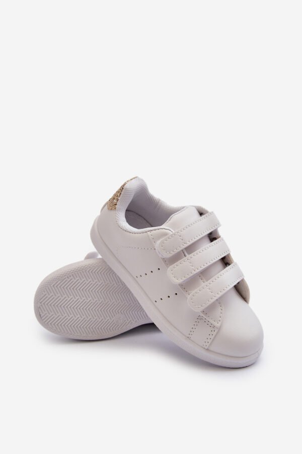 nIšskirtinės vaikiškos sportbačiai su Velcro užsegimu, idealiai tinkantys tiek aktyviems žaidimams, tiek kasdieniam naudojimui. Balti, rožiniai ir auksiniai spalvų deriniai suteikia mergaitėms žaismingumo ir originalumo. Šios dailios sportbačiai yra pagaminti iš ekologiškos odos, todėl ne tik išsaugo gamtos resursus, bet ir užtikrina patogumą.n