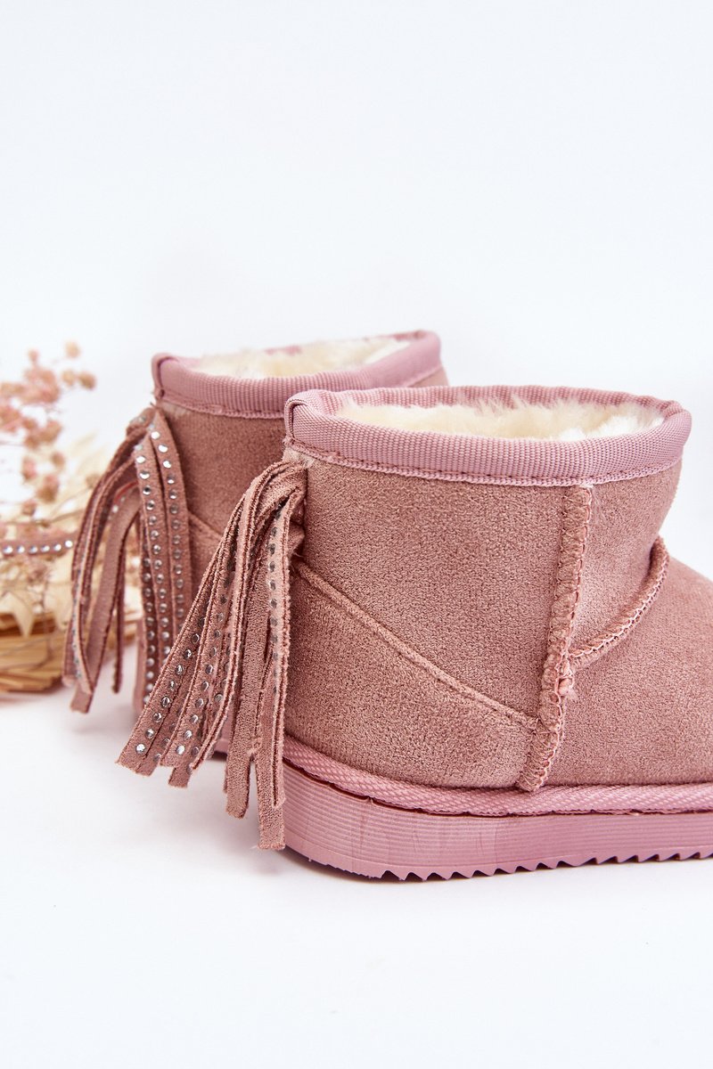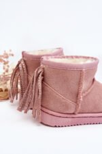 Vaikiški sniego batai, pagaminti iš eko zomšos. Vidus apšildytas storu kailiu, kuris apsaugos Jūsų mažylį nuo šalčio. Įmontuoti ant gumos pado. Viršutinės dalies gale puoštas kutais. Šis modelis būtinai turėtų atsirasti Jūsų mažylio spintoje! Rinkdamiesi dydį, vadovaukitės dydžių lentele.