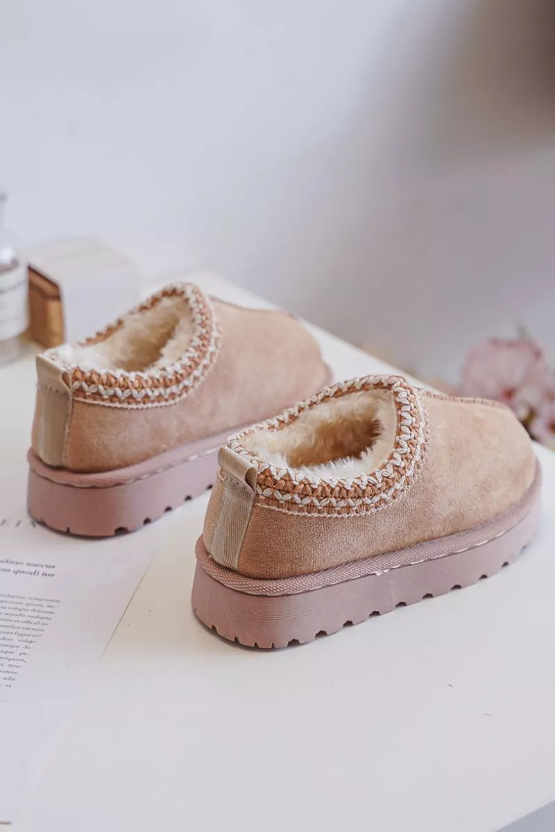 Vaikiški sniego batai su žavingu raštu ant aulo viršaus. Vidus apšiltintas storu sintetiniu kailiu, kuris užtikrins šilumą šalčiausiomis dienomis. Pagaminta iš eko zomšos. Įmontuoti ant storos pado, kuris puikiai izoliuos nuo šalto pagrindo. Šis modelis taip pat yra moteriškų dydžių. Sukurkite mamos + vaiko komplektą! Renkantis dydį, vadovaukitės dydžių lentele.