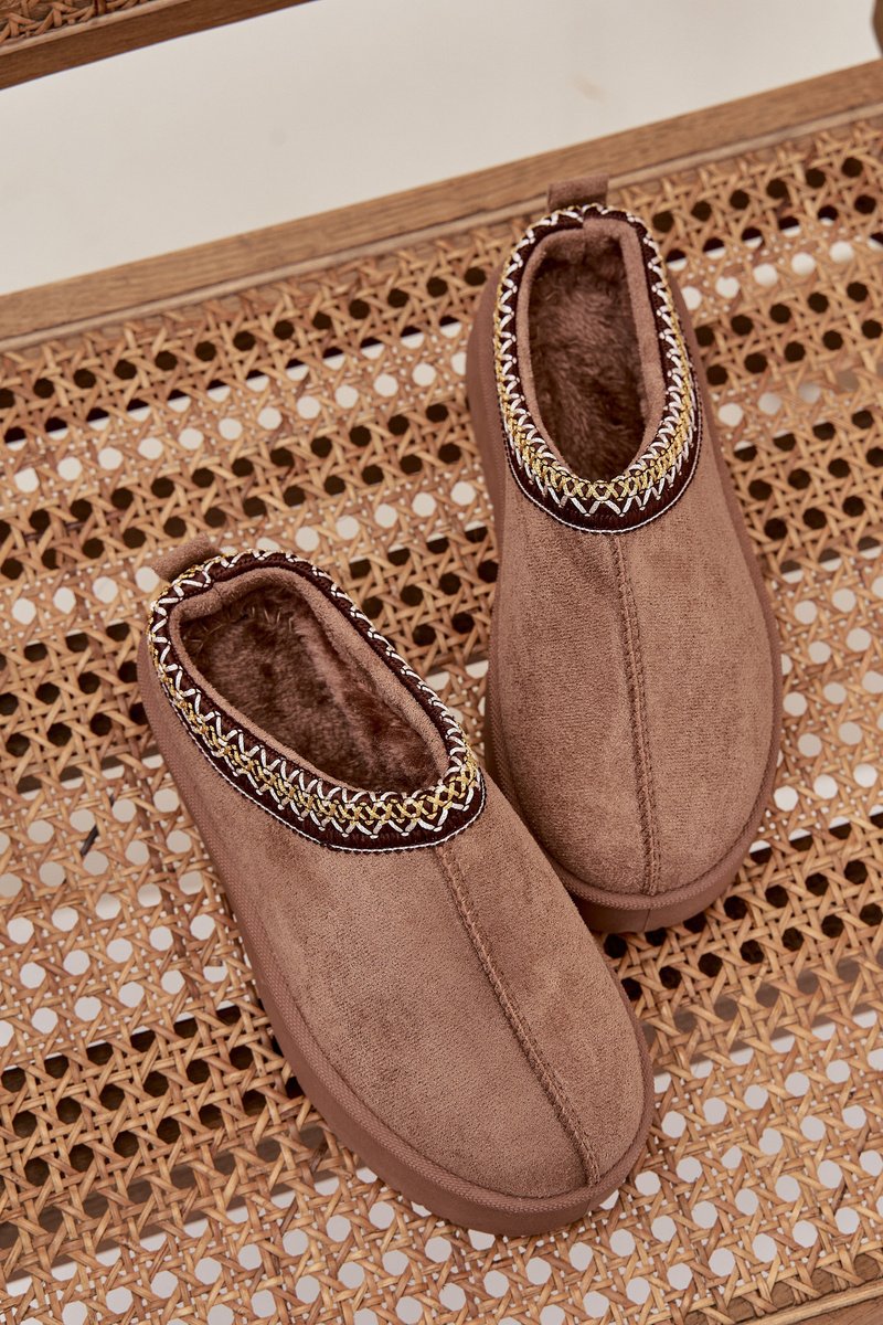 Vaikiki vaikiški/paaugliams skirti sniego batai, pagaminti iš eko zomšos, yra puikus pasirinkimas žiemos dienoms. Platformos modelis užtikrina patogumą ir efektyvią izoliaciją nuo šalto pagrindo, garantuodamas šilumą net ir šaltu oru. Batų vidus apšiltintas minkštu kailiu, kuris maloniai apglėbia pėdas, padidindamas dėvėjimo komfortą. Žema, įsispiriama aulinė dalis palengvina apsiavimą ir nusiavimą, todėl modelis yra itin praktiškas kasdien. Viršutinėje aulinės dalies dalyje esantis dekoratyvinis siuvinėjimas suteikia žavesio ir madingo charakterio. Tai stilingi ir funkcionalūs sniego batai, puikiai tinkantys tiek žiemos pasivaikščiojimams, tiek kasdieniam naudojimui šaltomis dienomis.