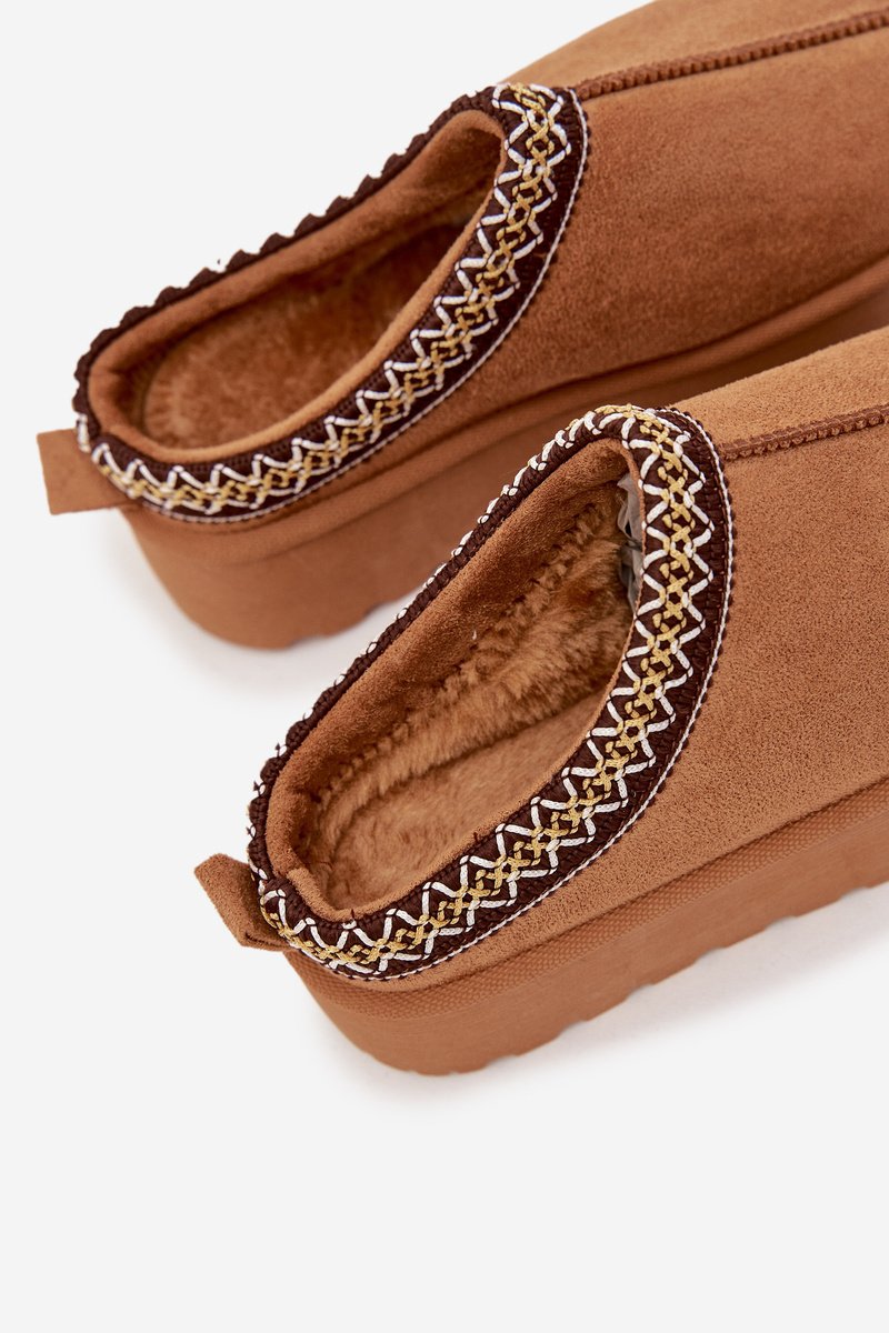 Vaikiki vaikiški/paaugliams skirti sniego batai, pagaminti iš eko zomšos, yra puikus pasirinkimas žiemos dienoms. Platformos modelis užtikrina patogumą ir efektyvią izoliaciją nuo šalto pagrindo, garantuodamas šilumą net ir šaltu oru. Batų vidus apšiltintas minkštu kailiu, kuris maloniai apglėbia pėdas, padidindamas dėvėjimo komfortą. Žema, įsispiriama aulinė dalis palengvina apsiavimą ir nusiavimą, todėl modelis yra itin praktiškas kasdien. Viršutinėje aulinės dalies dalyje esantis dekoratyvinis siuvinėjimas suteikia žavesio ir madingo charakterio. Tai stilingi ir funkcionalūs sniego batai, puikiai tinkantys tiek žiemos pasivaikščiojimams, tiek kasdieniam naudojimui šaltomis dienomis.