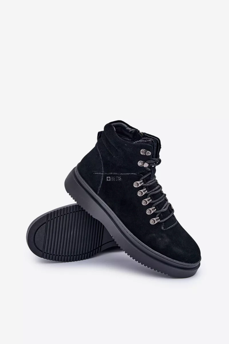 Big Star vyriški batai iš natūralios zamšos yra puikus pasirinkimas šaltoms dienoms. Šie juodi veluriniai batai pritaikomi įvairioms progoms ir garantuoja maksimalų komfortą. Su papildomais dirželiais pateikiamas tvirtas prisitaikymas ir paprastas pritaikymas prie kojos. Apvalūs batų priekiai suteikia pakankamai vietos kojų pirštams, todėl batai visą dieną išlieka patogūs.