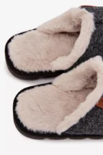Vyriškos šlepetės, pašiltintos kailiu, yra puikus pasirinkimas vėsesnėms dienoms. Plačios, uždaros noselės garantuoja patogumą ir judėjimo laisvę, o minkštas vidus su kailiu užtikrina šilumą ir komfortą dėvint. Bato priekis puoštas stilingu dirželiu su užrašu, suteikiančiu visumai modernumo. Tai praktiškos ir patogios šlepetės, puikiai tinkančios kasdieniam naudojimui namuose.