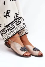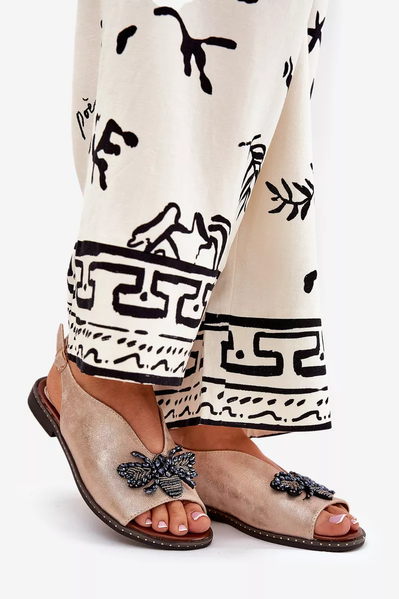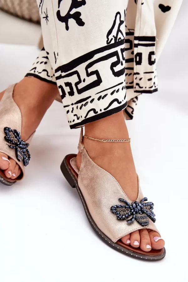 Būkite pirmas aprašęs “Žaismingos moteriškos basutės su dekoracija, plokščiu padu, rožinio aukso spalvos, Russona”