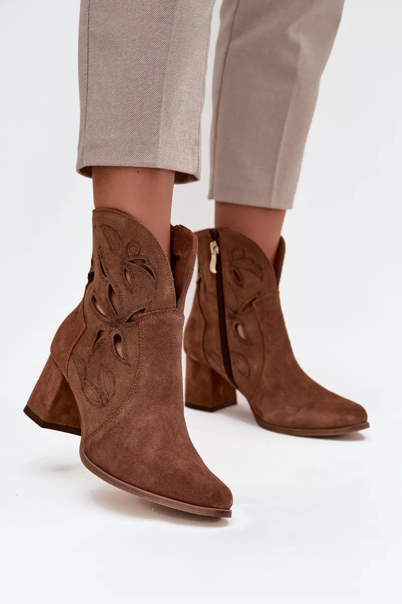 Kokybė ir Dizainas: Odiniai moteriški batai su atveriamais aukštaulūkais Zazoo 3647 kaštoninės spalvos puikiai tinka tiek stilingam, tiek kasdieniniam įvaizdžiui. Pagaminti iš natūralios zomšos, šie batai yra ypatingai patogūs ir kokybiški. Unikalus dizainas, papuoštas apsauginiais raštais, suteikia batams lengvumo ir originalumo.