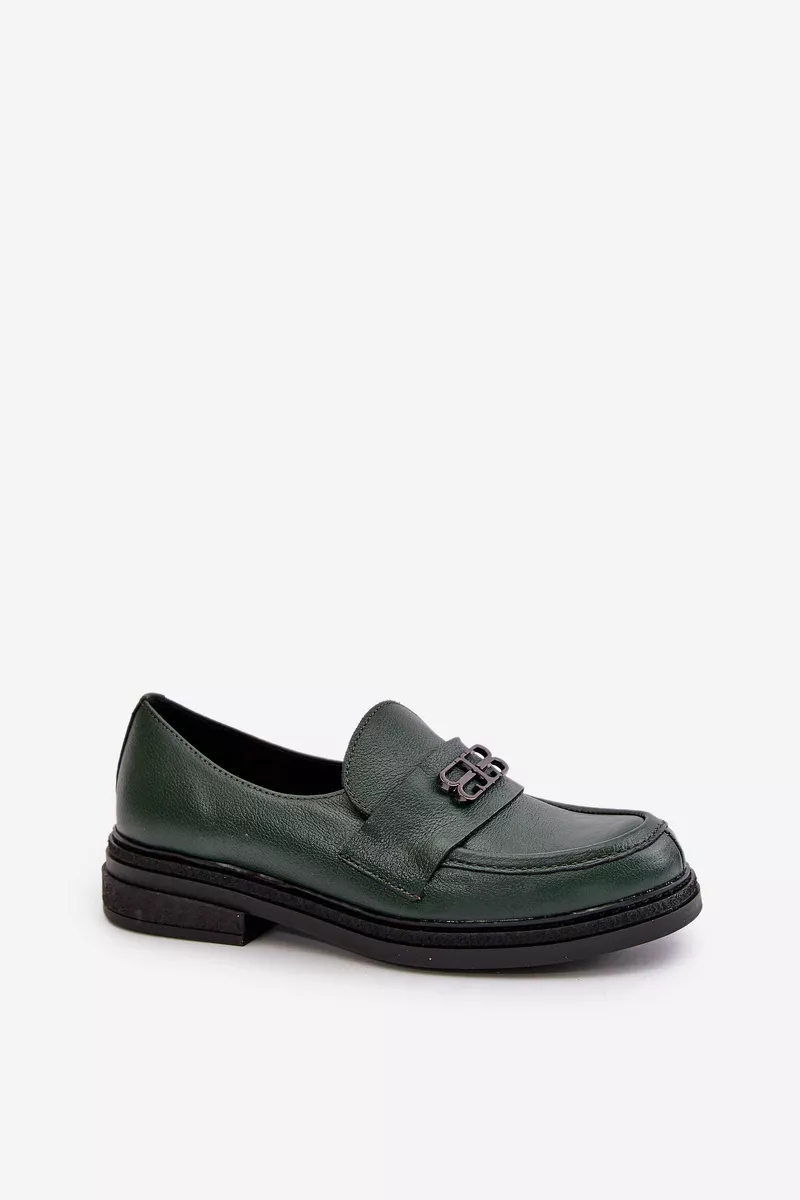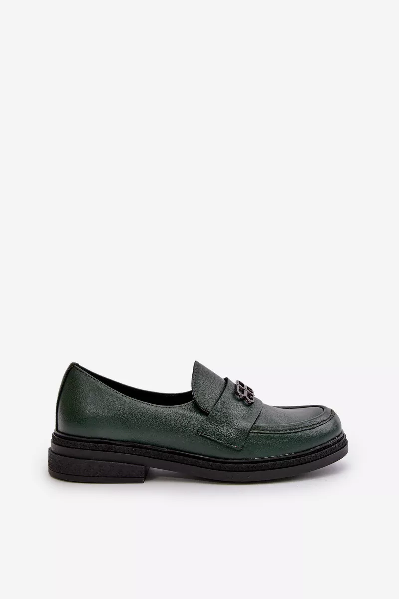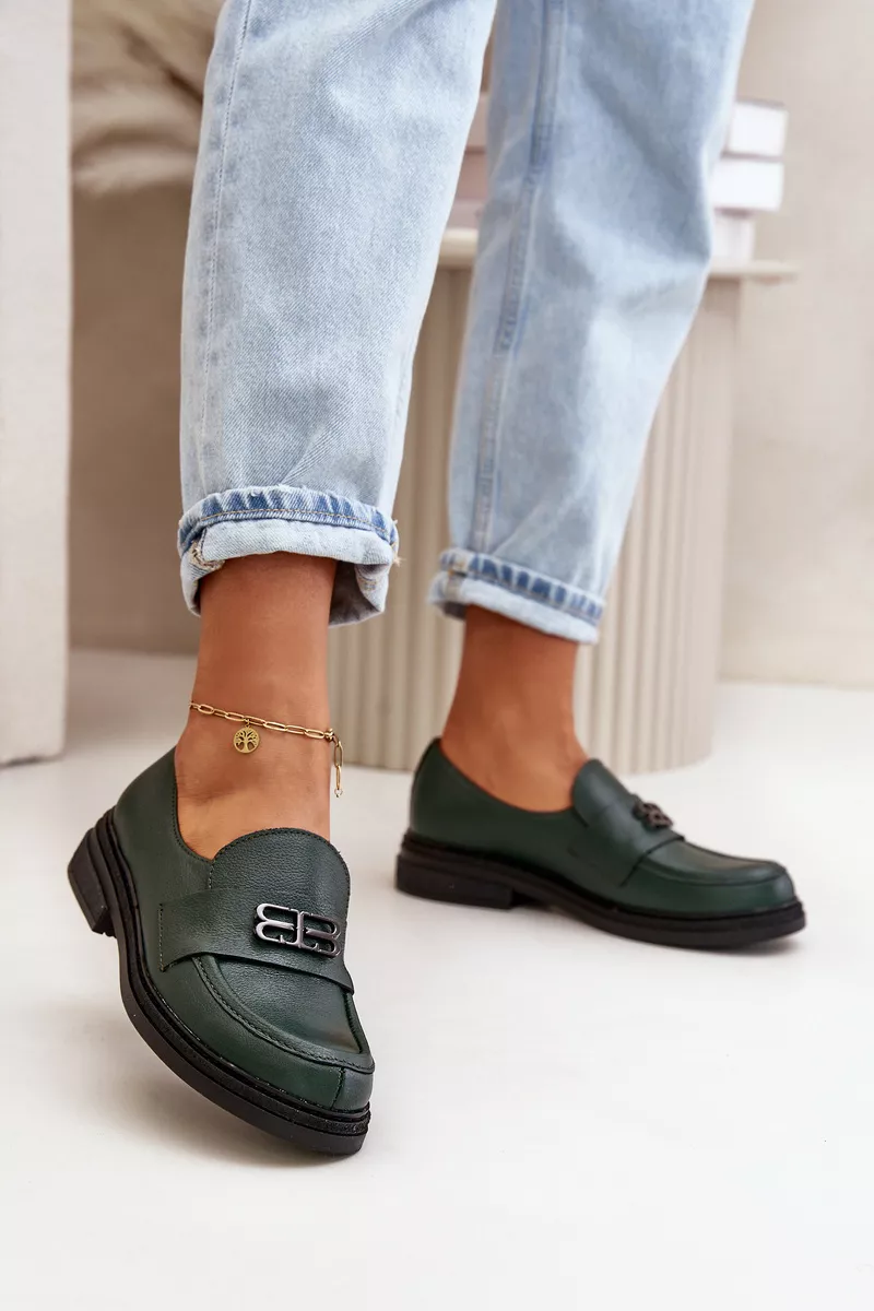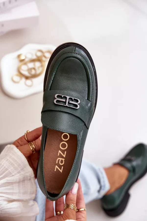 Zazoo 20174 Odiniai elegantiški moteriški bateliai su plokščiu kulnu, tamsiai žali