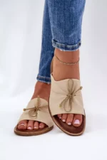 Patogios šlepetės, papuoštos madinga, pintos virvelės detalėmis. Švelnus klostavimas suteikia šioms šlepetėms subtilią išvaizdą. Batai pagaminti tik iš odos. Jie turi tvirtą, pagamintą iš plastiko pado. Minkštas vidpadis užtikrins komfortą net karštomis dienomis! Būtinai peržiūrėkite visą mūsų moteriškų šlepečių kolekciją! Pasirinkdami dydį, vadovaukitės dydžių lentele.