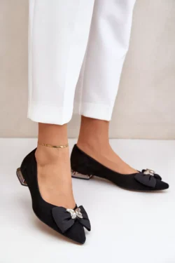 Elegantiškos balerinos, pagamintos iš natūralaus zomšo. Migdolo formos priekis optiškai ilginą kojas. Šiek tiek profiliuotas, minkštas odinis vidpadis užtikrins komfortą naudojimo metu. Priekyje – drugelio formos puošmena. Papildomai šis modelis turi sustiprintą kulno dalį. Rinkdamiesi dydį, prašome vadovautis dydžių lentele.