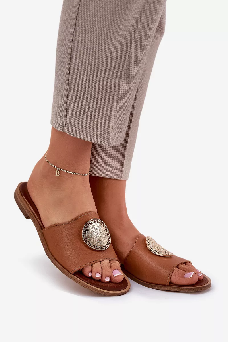 Šie moteriški sandalai išsiskiria ne tik kokybiška oda, bet ir elegantišku dekoru. Auksiniai detalės suteikia modelio išskirtinumą, padarant jį itin madingu pasirinkimu tiek kasdienai, tiek ypatingoms progoms. Dėvint šiuos sandalus jausitės ir atrodysite puikiai, kur beeitumėte. Jie puikiai derinami su įvairiais aprangos deriniais, nuo vasariškų suknelių iki mėgstamų džinsų.