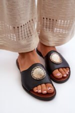 Naturinėmis odos moteriškos šlepetės yra puikus pasirinkimas moterims, kurios vertina eleganciją ir patogumą. Įrengtos ant plokščio kulno, jos užtikrina patogumą nešiojant visą dieną, todėl puikiai tinka tiek kasdieniam įvaizdžiui, tiek formalesnėms progoms. Papuoštos auksine puošmena, kuri suteikia joms ypatingo žavesio ir klasės. Dėl kruopštaus apdirbimo šios šlepetės yra ilgaamžės ir stilingos, todėl yra nepakeičiamas kiekvienos moters garderobo elementas. Renkantis dydį, prašome vadovautis dydžių lentele.