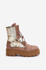 Išskirtiniai aulinukai, pagaminti iš natūralios odos. Platforma ir plokščias kulnas užtikrina stabilumą ir patogumą dėvint. Modelis užsegamas užtrauktuku, papildomai turi raištelius geresniam prigludimui. Didelė sagtis su dirželiu ant aulo yra efektingas akcentas, suteikiantis jiems madingą, išraiškingą charakterį. Renkantis dydį, vadovaukitės dydžių lentele.