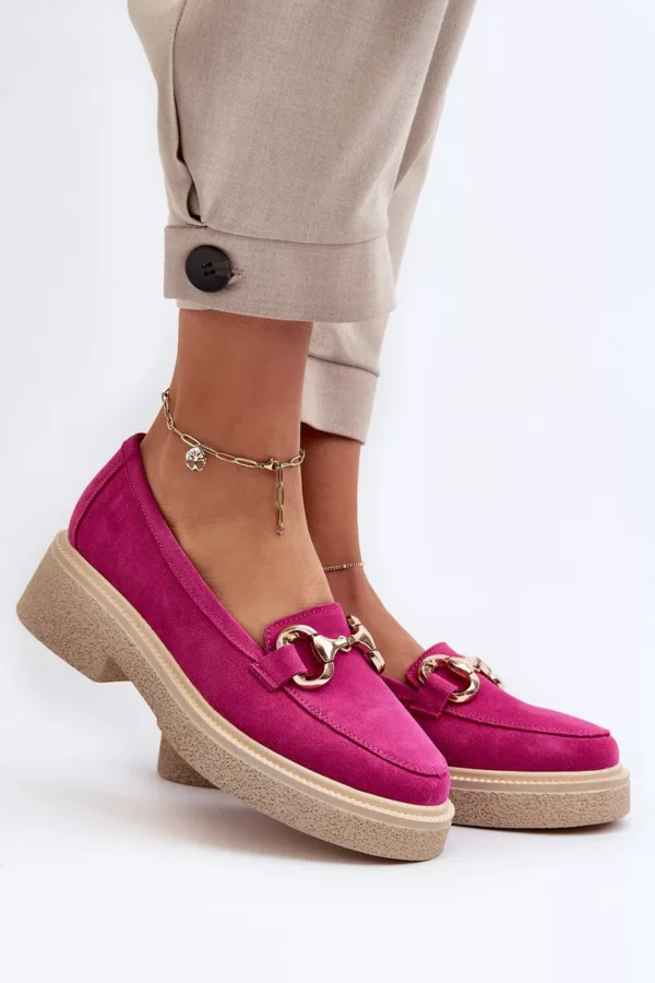 Pristatome “Zazoo 3429” veliūriniai damski mokasinai su dekoracija fuksija – elegantiškas ir stilingas pasirinkimas kiekvienai moteriai, vertinančiai ne tik mados subtilybes, bet ir patogumą. Šie mokasinai, pagaminti iš aukštos kokybės natūralios zomšos, ne tik atrodo prabangiai, bet ir užtikrina ypatingą komfortą, kuris lydi Jus kiekviename žingsnyje. Aukštos kokybės medžiagos garantuoja patvarumą bei ilgaamžiškumą, o priekinė dalis, puošta auksiniais dekorais, suteikia ekstravagantišką akcentą, pabrėžiantį jūsų asmeninį stilių ir rafinuotumą.